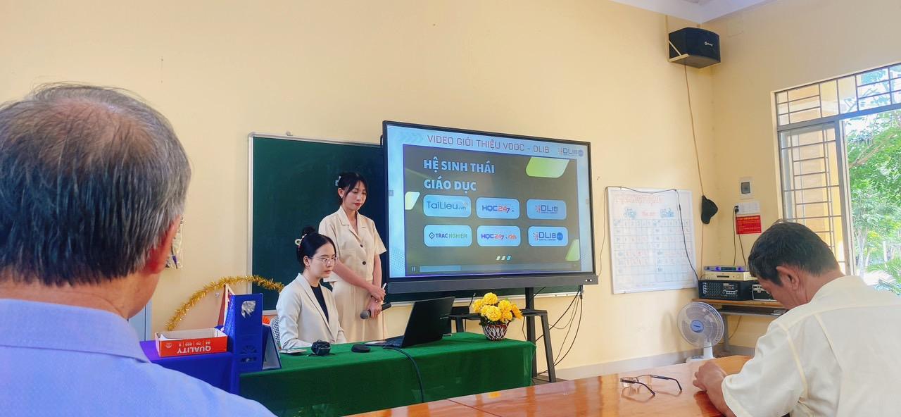 Mở đầu buổi tập huấn, chị Lê Nguyễn Ngọc Hân - Đại diện Phòng Chăm Sóc Khách Hàng của công ty VDOC, đã có phần giới thiệu tổng quan về nền tảng Thư viện số DLib K12. Chị Ngọc Hân nhấn mạnh rằng DLib K12 không chỉ đơn thuần là công cụ tra cứu tài liệu, mà còn là một hệ sinh thái học tập toàn diện. Nền tảng này hỗ trợ mạnh mẽ cho giáo viên trong việc thiết kế bài giảng, đồng thời giúp học sinh phát triển thói quen tự học và tìm tòi kiến thức. Chị cũng giải thích các tính năng nổi bật của hệ thống như khả năng tìm kiếm thông minh, lựa chọn tài liệu theo chủ đề hoặc môn học cụ thể, và cách tổ chức kho tài nguyên một cách logic và dễ dàng truy cập.