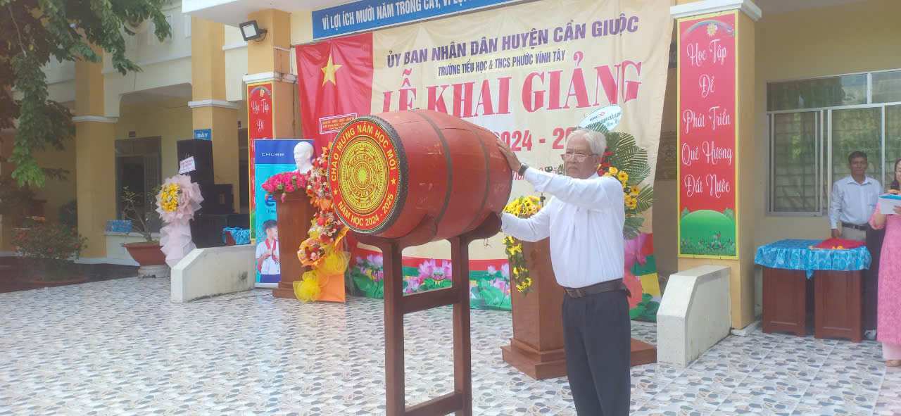 Lễ khai giảng năm học 2024-2025 của trường TH - THCS Phước Vĩnh Tây diễn ra trong không khí trang trọng và hân hoan, chào đón các em học sinh cùng thầy cô bước vào một năm học mới đầy hứa hẹn. Các hoạt động như chào cờ, phát biểu của Ban Giám hiệu và đánh trống khai trường đã khơi dậy niềm hứng khởi, tạo động lực cho các em học sinh quyết tâm học tập và phấn đấu trong năm học mới.