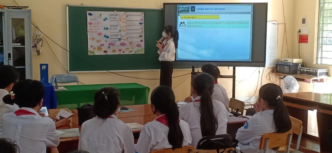 Phần mềm này không chỉ giúp học sinh tham gia tích cực mà còn khuyến khích tính chủ động, sáng tạo thông qua các hoạt động báo cáo. Các em đã có cơ hội thể hiện ý kiến và quan điểm của mình, qua đó rèn luyện kỹ năng tư duy phản biện và làm việc nhóm. Đặc biệt, trong bài học, nội dung giáo dục quốc phòng an ninh và bảo vệ môi trường biển cũng được tích hợp, tạo nên sự liên kết chặt chẽ giữa kiến thức học tập và thực tiễn cuộc sống.