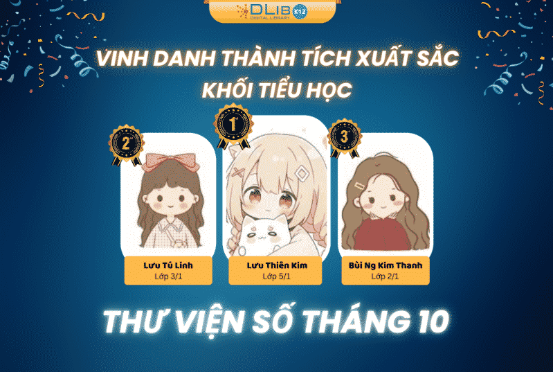 Nhà trường xin gửi lời chúc mừng và biểu dương đến các em học sinh đã đạt thành tích xuất sắc trong hoạt động Thư viện số tháng 10. Những nỗ lực của các em không chỉ mang lại kết quả đáng tự hào cho bản thân mà còn góp phần tạo động lực cho phong trào học tập của toàn trường. Hy vọng các em sẽ tiếp tục duy trì thói quen đọc sách, mở rộng hiểu biết và nuôi dưỡng tình yêu với tri thức. Hoạt động đọc sách trên Thư viện số sẽ mãi là nơi các em cùng nhau học hỏi, khám phá và phát triển bản thân. Chúc các em tiếp tục đạt nhiều thành tích cao hơn trong những tháng tiếp theo.